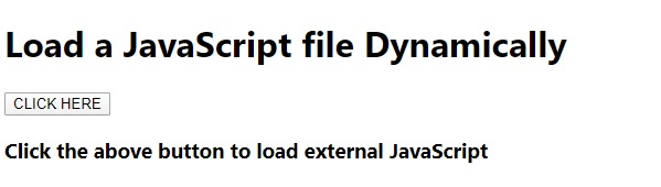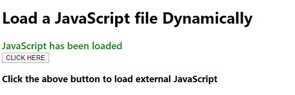 以下是動態載入 JavaScript 檔案的程式碼 −