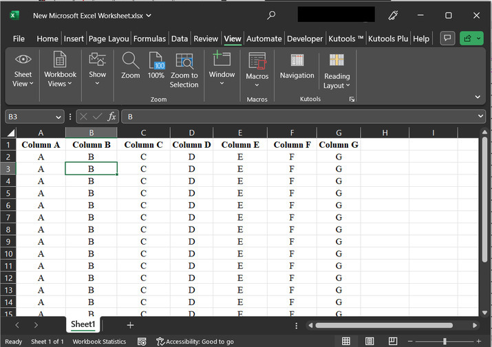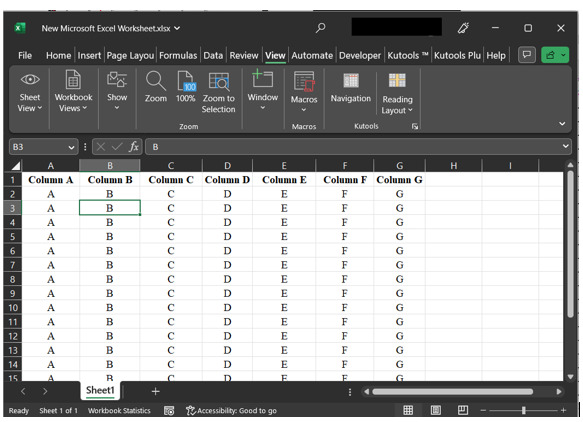 要了解在多個工作表中凍結相同行和列集的過程,使用者需要使用 kutool 選項。請考慮與上述示例中選擇的相同的 Excel 工作表。請考慮以下提供的電子表格: