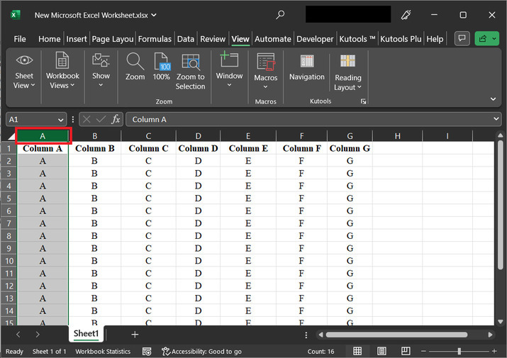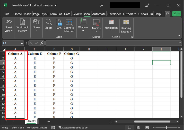 本文說明了這兩個示例。第一個示例使用凍結窗格的概念來鎖定特定列。藉助凍結窗格選項,可以根據使用者需要鎖定特定行或列。第二個示例使用 kutools 來完成相同的任務。