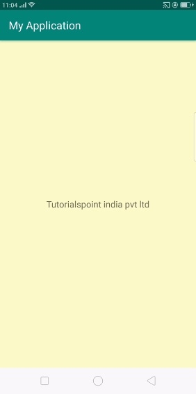 <?xml version="1.0" encoding="utf-8"?> <LinearLayout xmlns:android="http://schemas.android.com/apk/res/android" xmlns:tools="http://schemas.android.com/tools" android:layout_width="match_parent" android:layout_height="match_parent" tools:context=".MainActivity" android:background="#33FFFF00" android:gravity="center" android:orientation="vertical"> <TextView android:id="@+id/text" android:textSize="18sp" android:layout_width="wrap_content" android:layout_height="wrap_content" /> </LinearLayout>