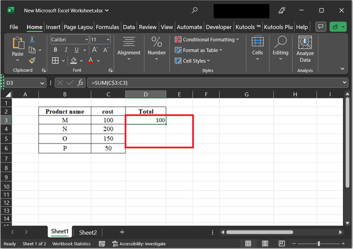 SUM(C$3:C3)− 公式的這一部分指定要相加的單元格範圍。它從固定的單元格C$3開始,包括C列中直到當前行(由C3表示)的所有單元格。