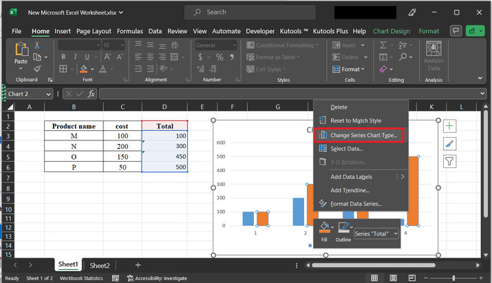這將在右側顯示一個圖表。使用右鍵單擊以獲取所需的選項列表。在可用的選項列表中,選擇“更改圖表型別...”選項。
