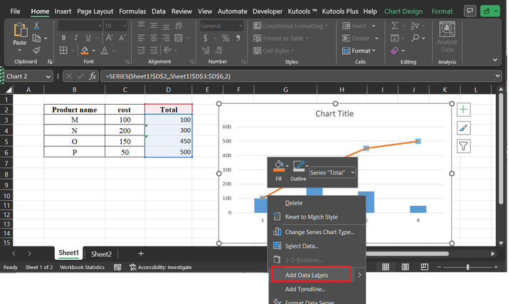 上述步驟將顯示一條趨勢線,如下所示。使用右鍵單擊選擇“新增資料標籤”選項。請參考下圖。