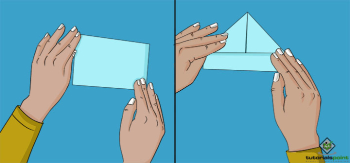 首先,將您的紙張縱向對摺,然後展開。將其橫向對摺。從頂部開始,您可以摺疊每個角,直到它與中間的其他摺痕相交。在底部襟翼的底層做一個垂直的摺痕。