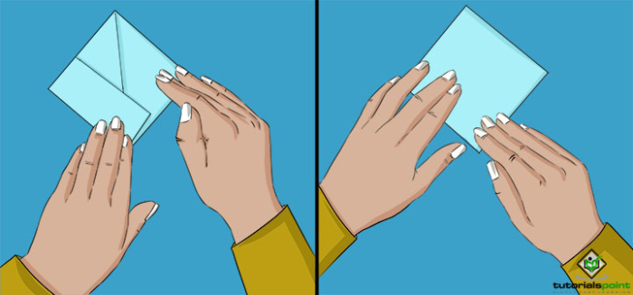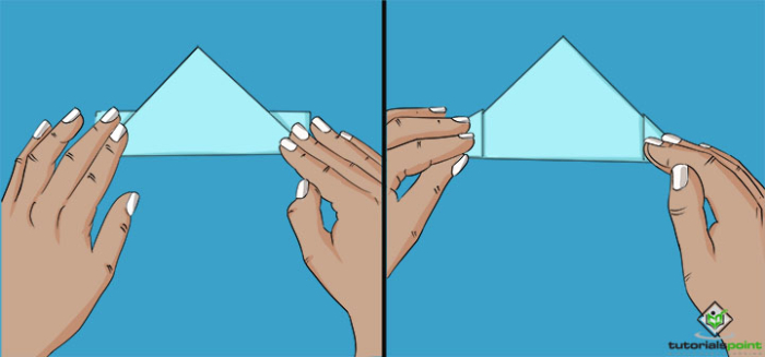 換句話說,翻轉紙張。然後,將剩餘的底部點連線到頂部點,檢查邊緣是否平行。需要沿著邊緣按壓才能形成摺痕。拿起摺疊好的紙張,將拇指插入縫隙中。重複上一步,用拇指逐漸將紙張拉開。當你拉完後,紙張應該恢復平整。