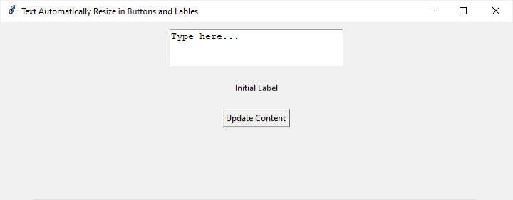 執行此程式碼後,將出現一個視窗,其中包含一個文字框、一個標籤和一個標有“更新內容”的按鈕。在文字框中寫一些內容,然後單擊按鈕即可自動調整按鈕和標籤的大小。