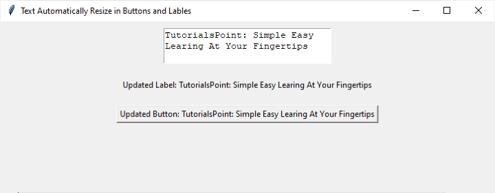 app = tk.Tk() app.title("Text Automatically Resize in Buttons and Lables") app.geometry("720x250")