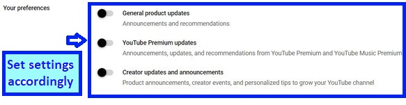 YouTube 上的通知頁面分為兩部分 - 常規設定和電子郵件通知
