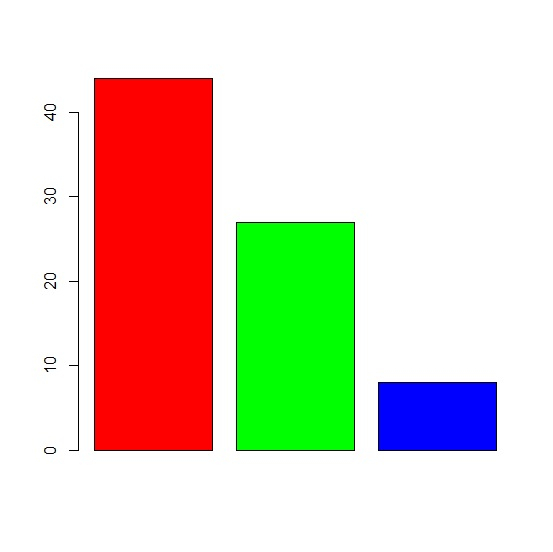 barplot(x,col=c("red","green","blue"))輸出
