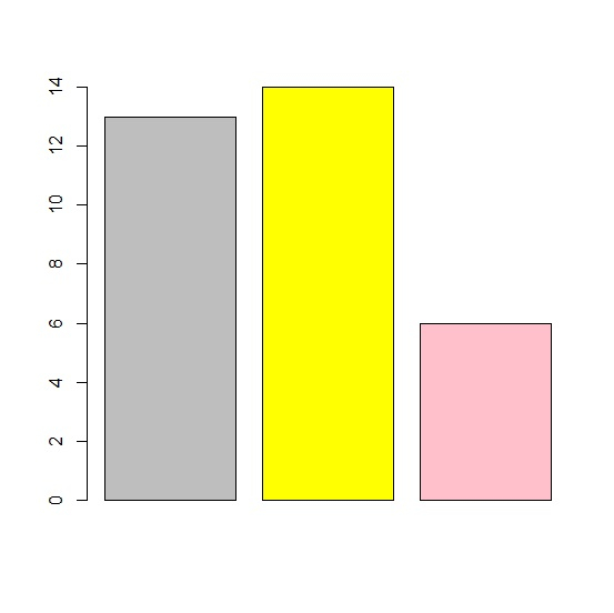 barplot(y,col=c("grey","yellow","pink"))輸出