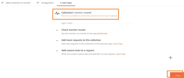 步驟 4 - 生成 Monitor Collection1。單擊關閉按鈕。