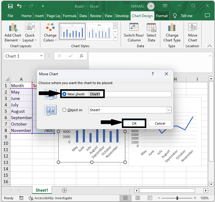 首先,單擊圖表,然後單擊“圖表設計”,然後單擊“移動圖表”。