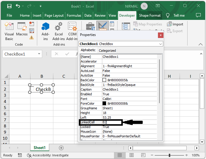 在這裡,我們將更改 Excel 屬性以完成任務。讓我們來看一個簡單的過程,瞭解如何在 Excel 中移動和調整單元格內複選框的大小。