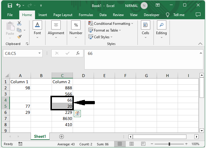 如果目標單元格為空,則資料將以預設方式貼上。如果目標單元格值已填充,則將首先移動原始資料,然後放置新資料。
