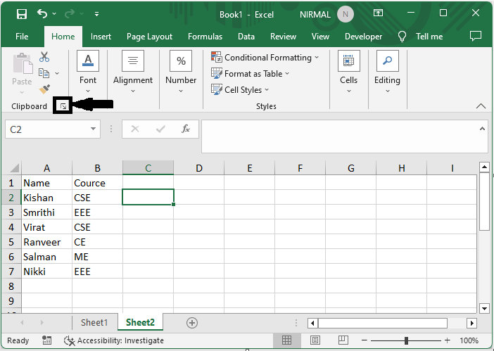 首先,透過點選“開始”選項卡下方的箭頭標記啟用剪貼簿窗格。