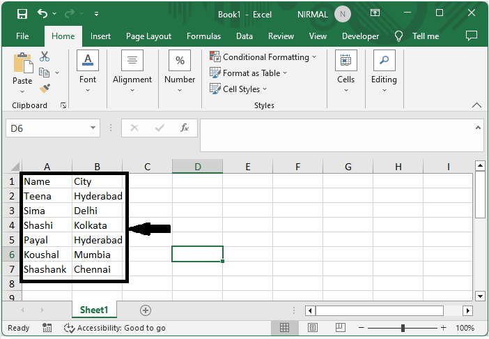 在這裡,我們可以使用選擇和拖動方法來完成任務。讓我們來看一個簡單的過程,瞭解如何在Excel中上下移動行或左右移動列。