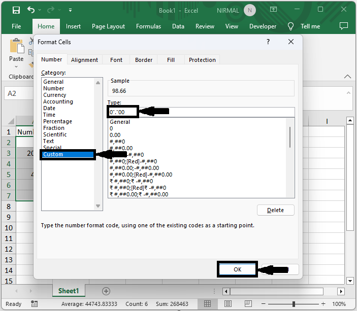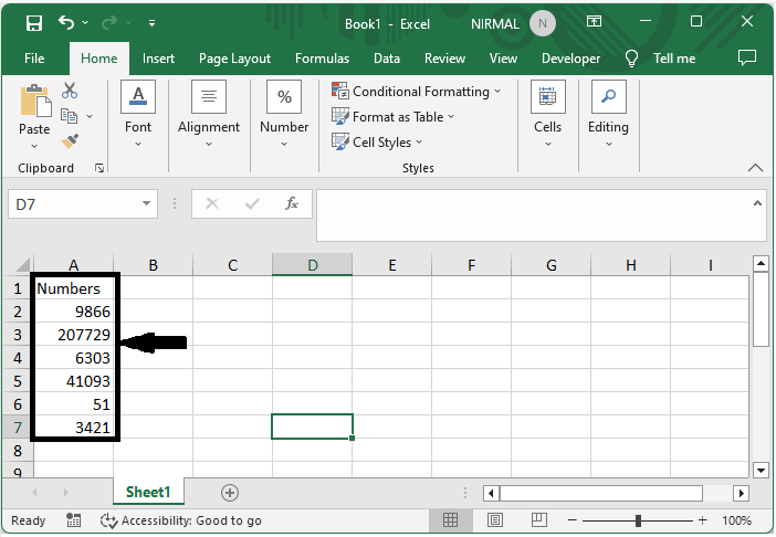 在這裡,我們將首先選擇單元格範圍,然後對其進行格式化以完成任務。讓我們來看一個簡單的過程,瞭解如何在Excel中將小數點向左移動。