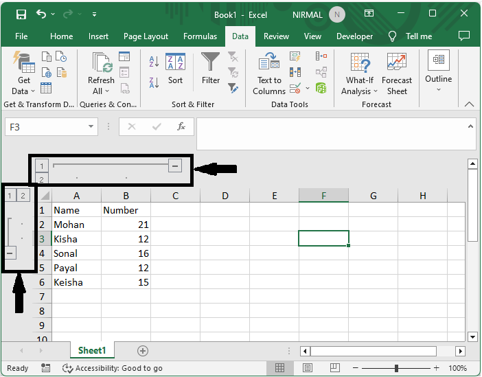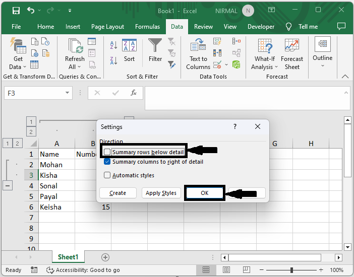 在這裡,我們將更改大綱設定以完成任務。讓我們來看一個簡單的過程,瞭解如何在 Excel 中將分組加減號移到頂部。