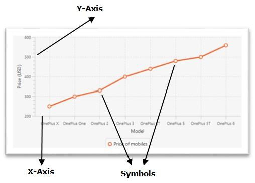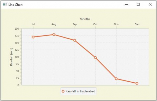 JavaFX 折線圖包含指示 X 軸上資料值中的符號。通常是小的圓圈。
