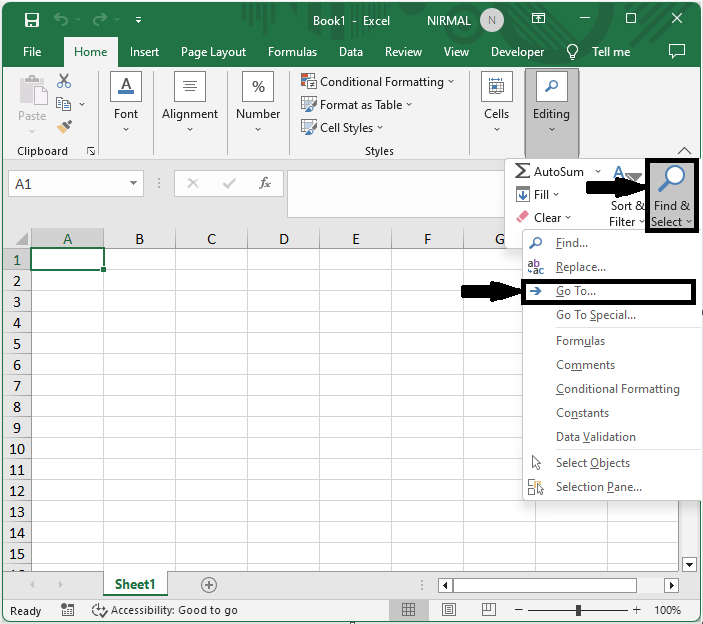 這裡我們將使用“轉到”功能來完成任務。讓我們來看一個簡單的過程,學習如何在Excel中在單元格之間導航。