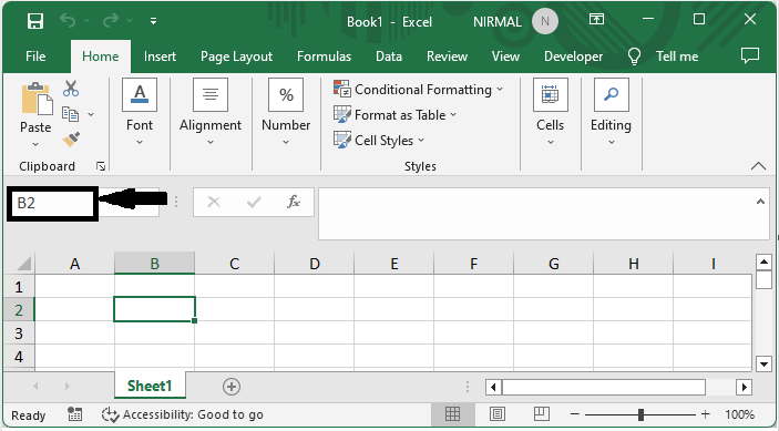 另一種在單元格之間導航的好方法是使用名稱框。只需在名稱框中輸入位置,然後單擊回車鍵。