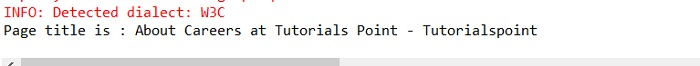 讓我們找到當前頁面的標題。我們將得到關於教程點的職業生涯 – 教程點作為輸出。