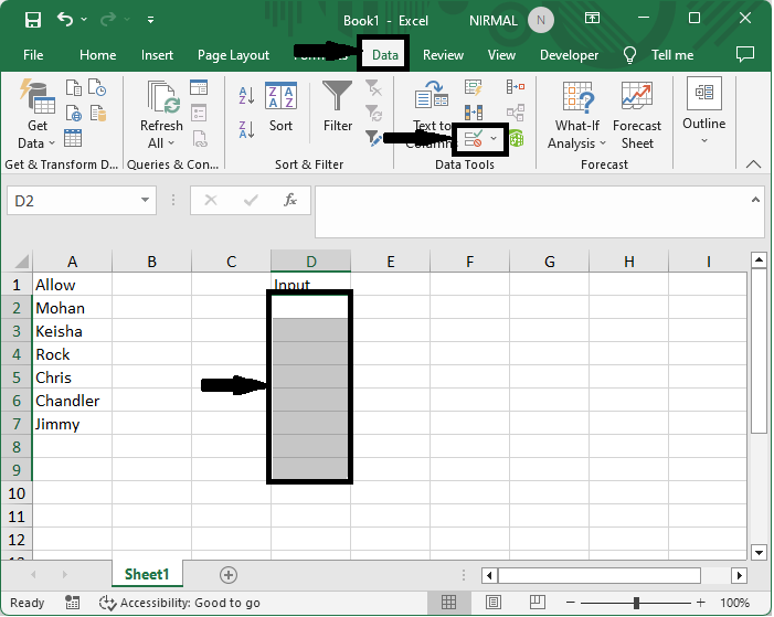 在這裡,我們可以使用資料驗證列表來完成任務。因此,讓我們看一個簡單的過程,瞭解如何僅允許在 Excel 中輸入或錄入特定值。