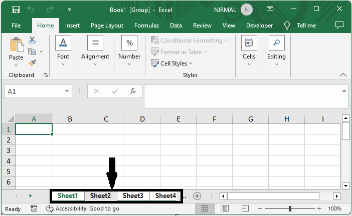 首先,選擇要合併的工作表。要選擇多個工作表,請按住 Ctrl 鍵並選擇這些工作表。