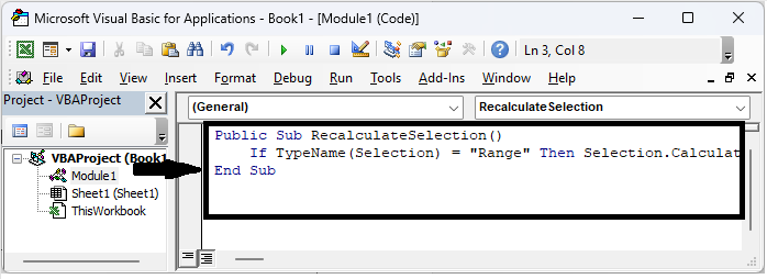 Public Sub RecalculateSelection() If TypeName(Selection) = "Range" Then Selection.Calculate End Sub