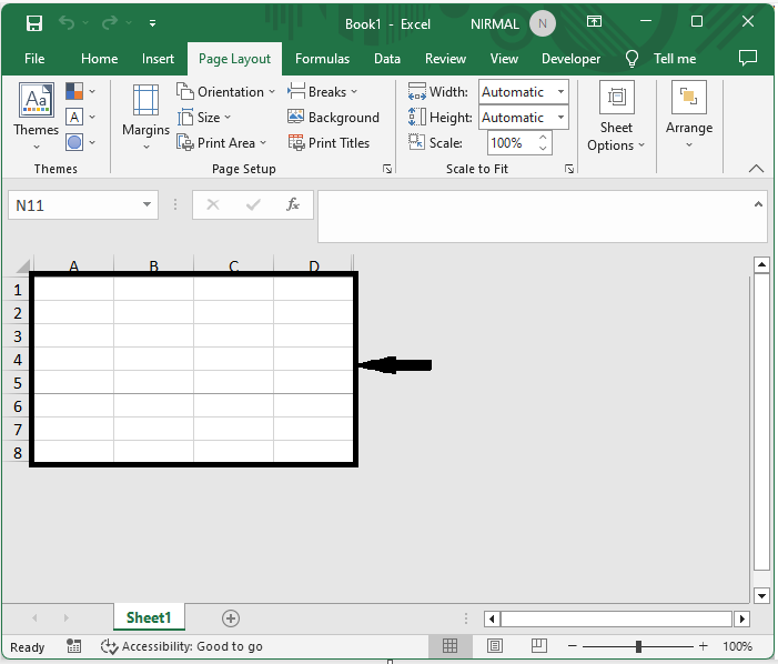 在這裡,我們將使用VBA模組來完成任務。讓我們來看一個簡單的過程,瞭解如何在Excel中僅顯示工作表中的列印區域。