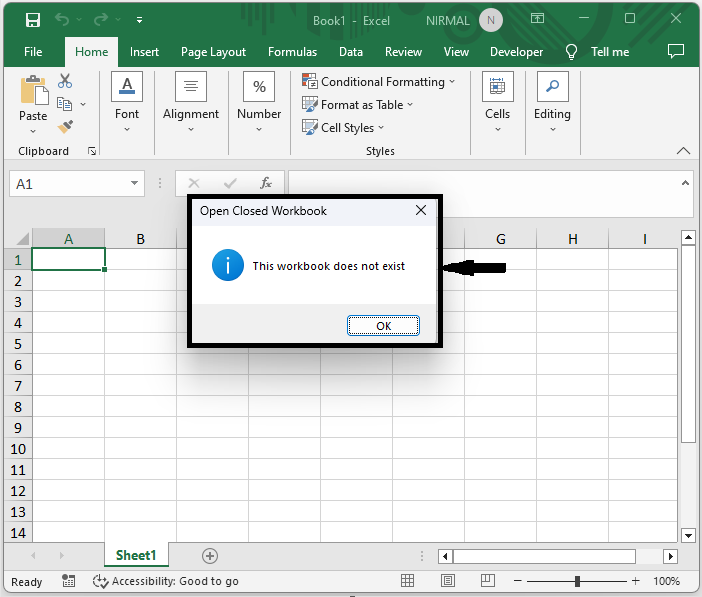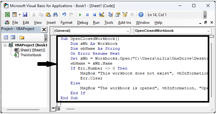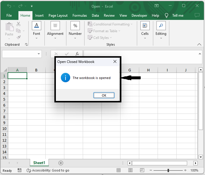 MsgBox "The workbook is opened", vbInformation, "Open Closed Workbook"