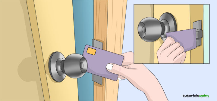 要做到這一點,您需要將卡片插入門和門框之間,然後使用卡片作為槓桿對門施加壓力。此技巧在帶有把手或旋鈕的門上更有效,使您能夠對門施加更大的力。