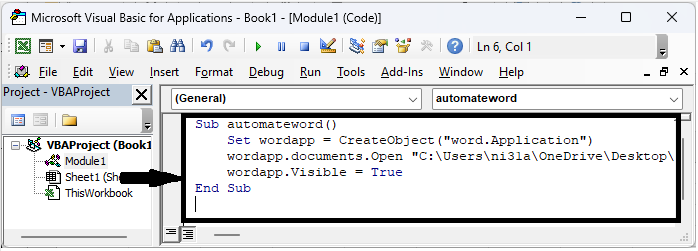 我們首先會插入 VBA 模組,然後執行它來完成任務。因此,我們來了解一個簡單的過程,瞭解如何透過 Excel 中開啟特定的 Word 文件。