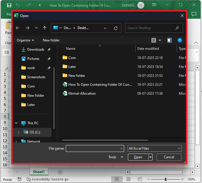 在本課程結束時,您應該能夠輕鬆訪問儲存 Excel 檔案的資料夾,傳輸或複製工作簿,並執行任何其他檔案管理操作。讓我們開始學習如何在 Microsoft Excel 中開啟當前工作簿的包含資料夾!