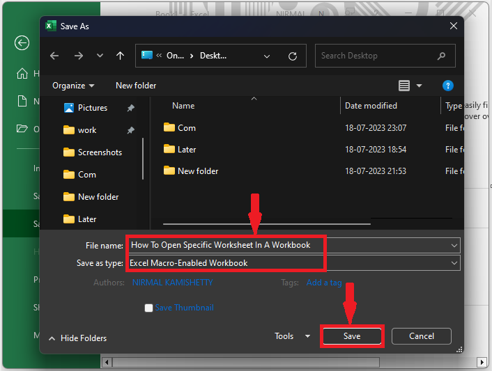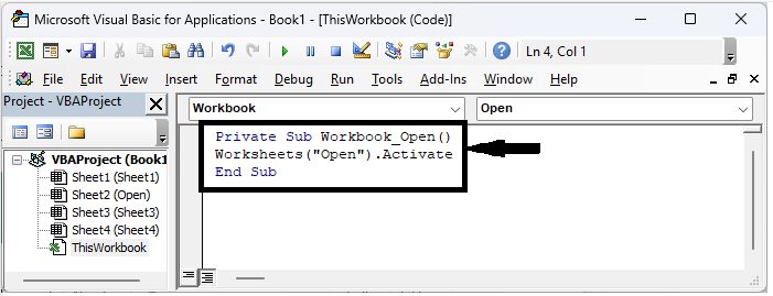 這裡我們將首先新增 VBA 程式碼,然後儲存工作表並重新開啟工作表以完成任務。讓我們來看一個簡單的過程,瞭解如何在 Excel 中開啟工作簿中的特定工作表。