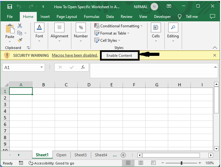 最後,重新開啟工作表並單擊“啟用內容”以完成任務。