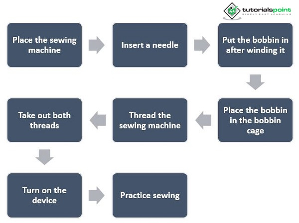 要操作縫紉機,你只需熟悉壓腳、梭芯繞線裝置、針腳調整按鈕、線軸銷、張力導線和其他關鍵部件即可。將針安裝到機器上,並將其平放在堅固的桌子上。繞線並插入梭芯後穿線,以消除兩種危險。初始設定應為直線縫紉。將織物與針對齊並將壓腳壓在材料上後,踩下踏板。