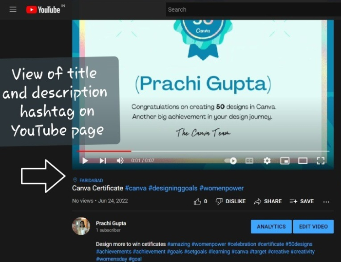 標記位置 - 應標記影片的位置,因為它可以提高影片的特定位置搜尋。此外,它還有助於影片在更多本地影片搜尋中被發現。如下面的圖片所示,影片中添加了法裡達巴德的位置。