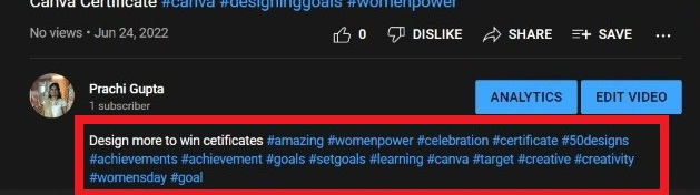 使用話題標籤 - 在 YouTube 影片中使用標籤可以告訴觀眾和 YouTube 您的影片內容。影片話題標籤應該包含關鍵詞,以增加影片的可搜尋性。標籤特別有助於推動搜尋,因為它們使關鍵趨勢更易於發現。