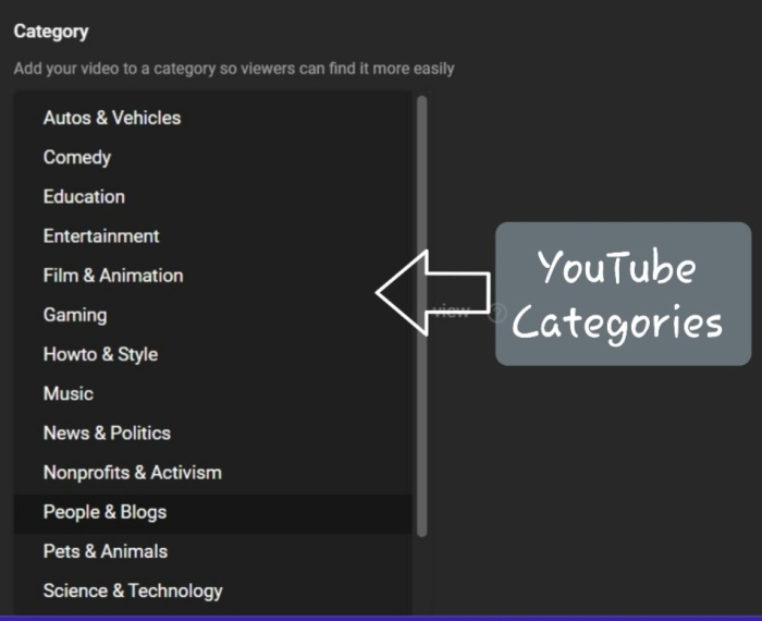 選擇影片類別 - 如果觀眾透過高階選項或篩選進行影片搜尋,他們可以選擇搜尋以顯示來自選定類別的影片。因此,對您的影片進行分類,以便更有機會被使用者發現。