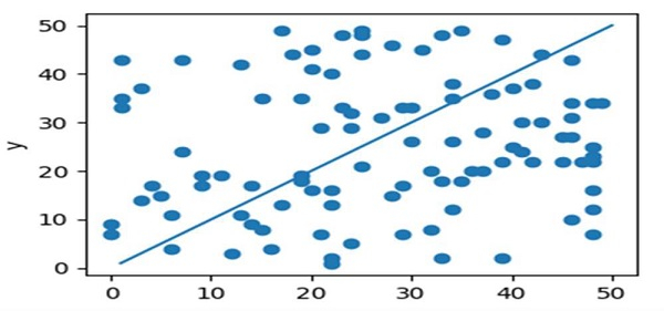 ax.scatter([random.randint(1, 1000) % 50 for i in range(100)],