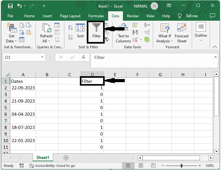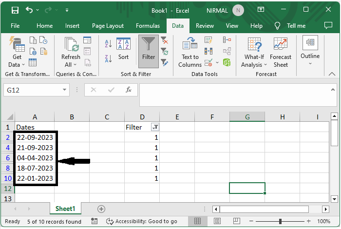 然後,最後,要刪除篩選,請單擊“資料”並單擊“篩選”。