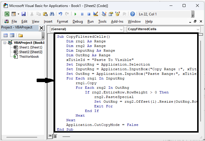 在這裡,我們將首先建立一個VBA模組,然後執行它來完成任務。讓我們來看一個簡單的過程,瞭解如何在Excel中僅將值貼上到可見或已篩選單元格。