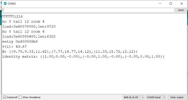 BasicLinearAlgebra庫有助於表示矩陣並在Arduino上執行矩陣運算。要安裝它,請在庫管理器中搜索“BasicLinearAlgebra”。