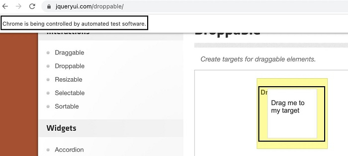 在上圖中,名為 Drag me to my target 的元素必須拖放到名為 Dropped! 的元素上。