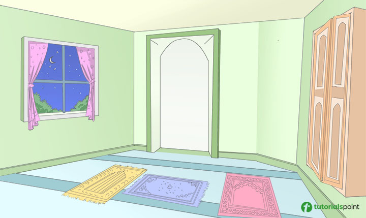 祈禱時,請尋找一個整潔、安靜、良好的場所。穆斯林被鼓勵在純潔、神聖的地方向真主祈禱,以此表示敬意,因為他的話語是純潔的。穿上您通常的禮拜服裝,像平時祈禱一樣,面向麥加的聖卡巴。