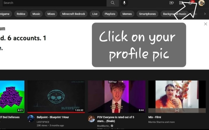 單擊螢幕右上角的帳戶頭像,然後