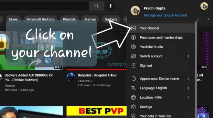 在下拉選單中點選“您的頻道”。