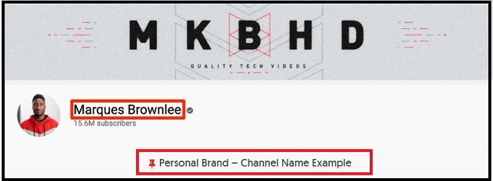 如果你正在建立個人頻道,可以使用首字母縮寫。例如,著名的科技 YouTuber 馬克斯·布朗利使用了他的首字母縮寫和 HD(因為他的所有影片都是高畫質質量的)。