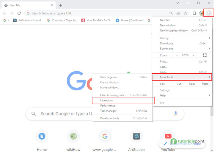 步驟 2 - 選擇“更多工具”選項,然後點選“擴充套件程式”。